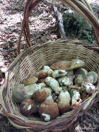 Cesto pieno di piccoli porcini