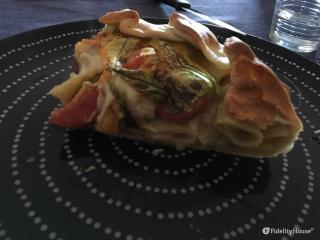 Pasta brisé: con fiori di zucca, zucchine, pomodorini ed emmenthal