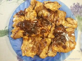 Fettine dipollo sfumate con aceto, vino bianco e cipolle caramellate