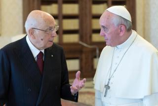 L'inchino di Papa Francesco davanti al feretro di Giorgio Napolitano