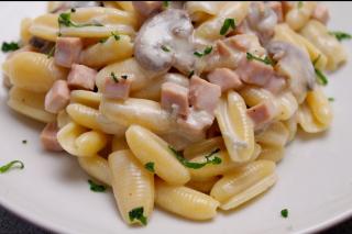 Gnocchetti sardi con funghi, prosciutto cotto e crema di gorgonzola