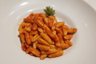 Gnocchetti di patate con salsa di melanzane, noci e salsiccia