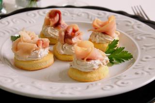 Biscottini al formaggio con mousse di olive e pesce spada affumicato