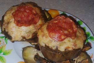 Carciofi ripieni con prosciutto cotto, parmigiano e salsiccia