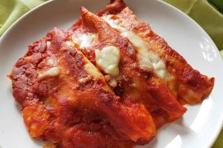 Crepes al forno con pomodoro, mozzarella e prosciutto