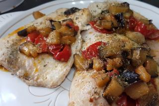 Risotto con crema di peperoni e pesce spada