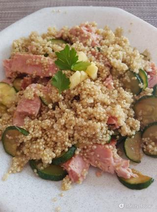 Insalata di quinoa con zucchine, piselli e feta
