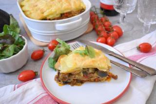 Gratin di patate, ragù e ratatouille
