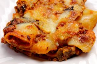 Paccheri al forno con ragù, melanzane fritte e scamorza affumicata