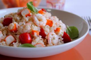 Insalata di riso con zucchine, surimi, mozzarella e pomodorini