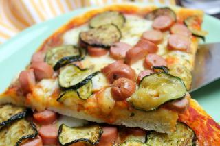 Pizza veloce con wurstel, zucchine e mozzarella