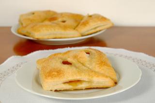 I triangoli di sfoglia veloce con albicocche sono deliziosi dolcetti dal cuore morbido di frutta, fatti con una pasta sfoglia fresca pronta da cuocere