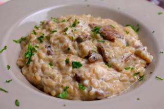 Il risotto con funghi porcini secchi, salsiccia e pecorino è un primo piatto cremoso e dal sapore intenso, indicato per un pranzo o cena in compagnia e da gustare insieme ad un calice di prosecco.