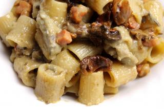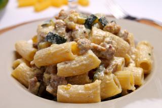 Rigatoni con salsiccia, funghi porcini, zucchine e ricotta