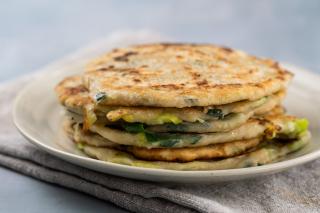 Buoni da soli o accanto ad una proteina semplice, i pancakes cinese con porri e cipollotti sono veloci, facili, golosi e leggeri.
