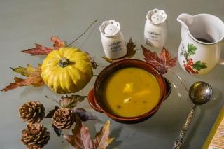 Vellutata di porri, zucca e topinambur aromatizzata allo zenzero