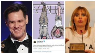 Il comico Jim Carrey, ai microfoni di "Variety", ha risposto alle offese di Alessandra Mussolini in calce alla vignetta "satirica" di suo nonno e Claretta Petacci.